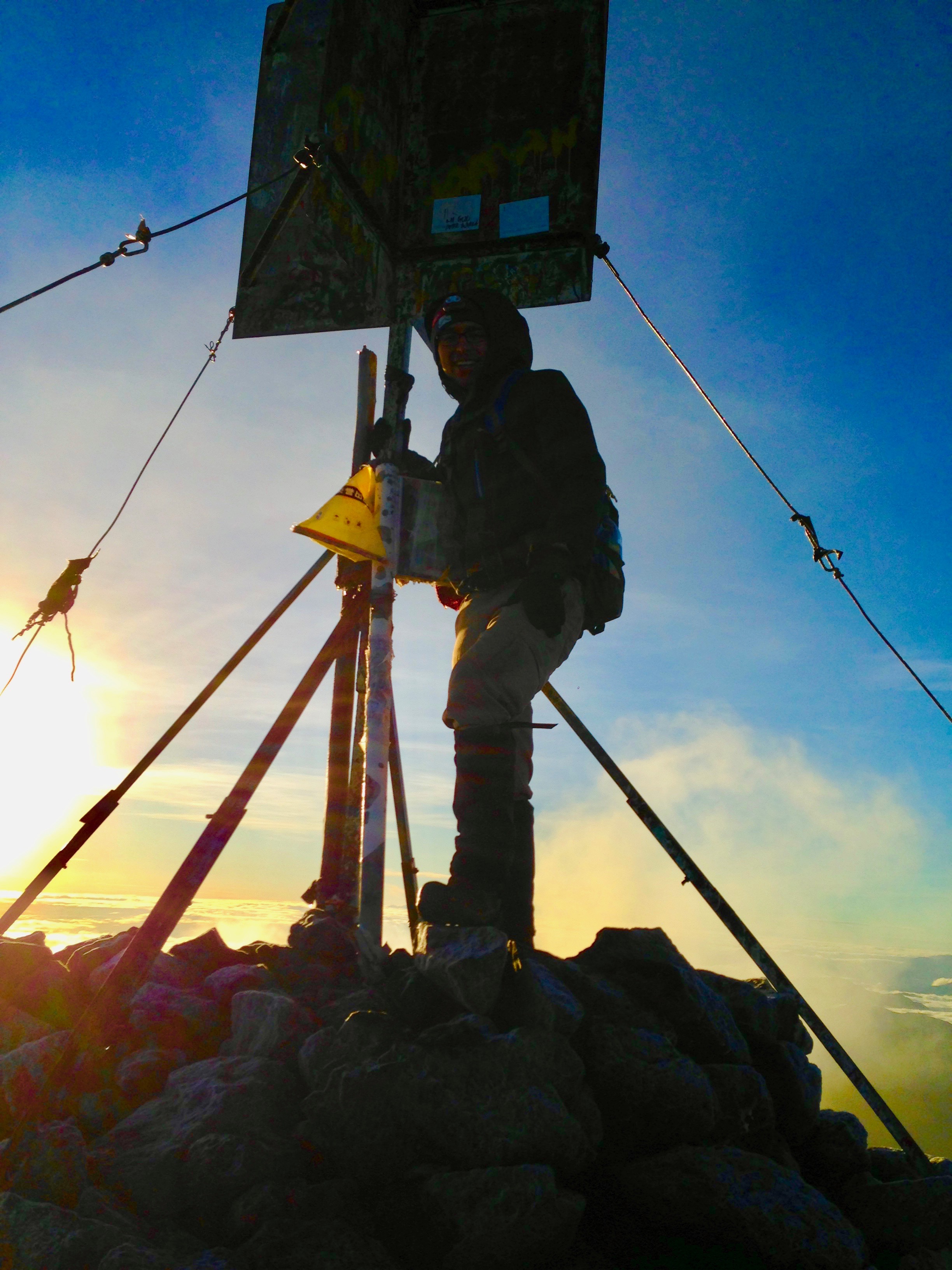 After spending the night at base camp, Nathan, Charity, Scott, his daughter Emma, Apa, his son Bon, the guide and I woke up at 1:30 a.m. and started to climb up the mountain. Scott and Emma ended up turning back after reaching the second lake, while the rest of us continued on our hike. We finally reached the summit just before 7:00 a.m. The weather on top is clearest in the early morning, which is why we left so early.