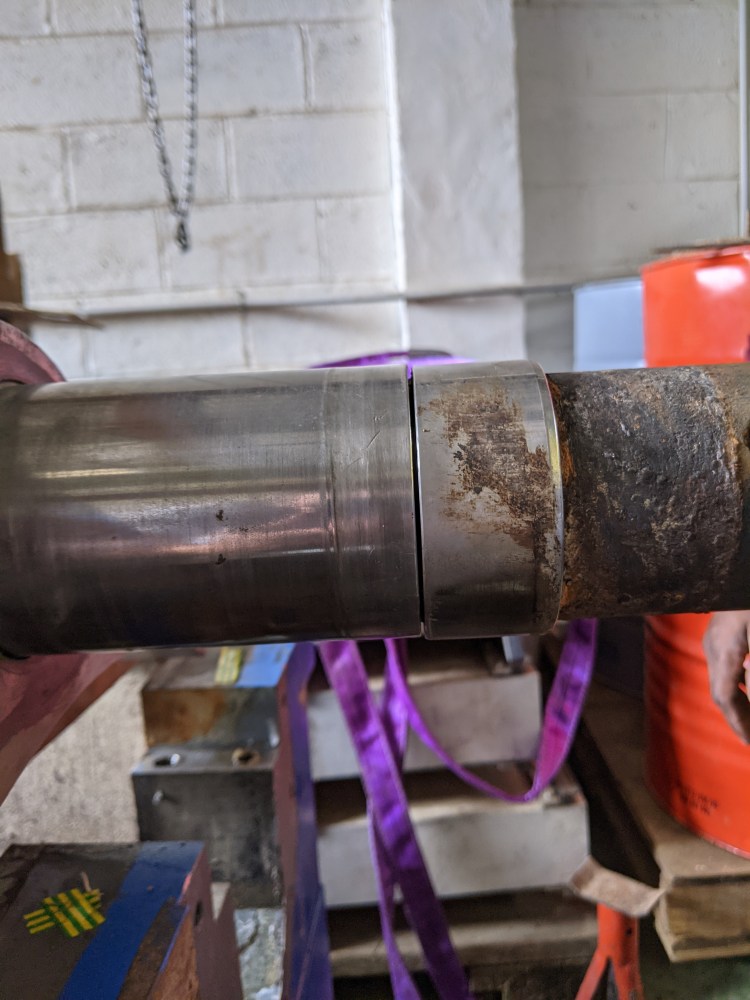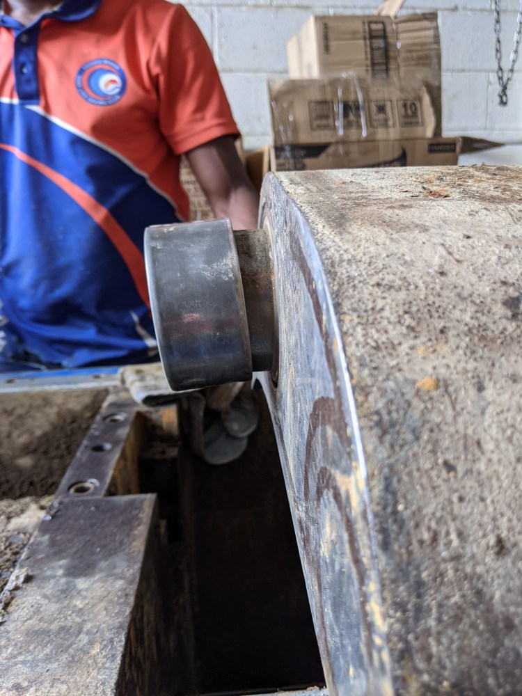 We do not have the capability to repair this kind of damage here at Kudjip, so we got in touch with Chris Jenkins at PNG Springsmiths, a machine shop in Mount Hagen. Chris estimated that he could repair this by welding material onto the worn shaft and machining it to original specifications.