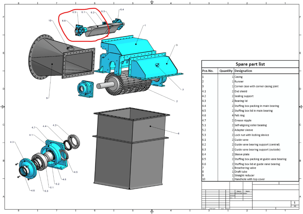 Now seven years old, the hydro had developed a significant leak at the shaft of the large guide vane (circled in red).